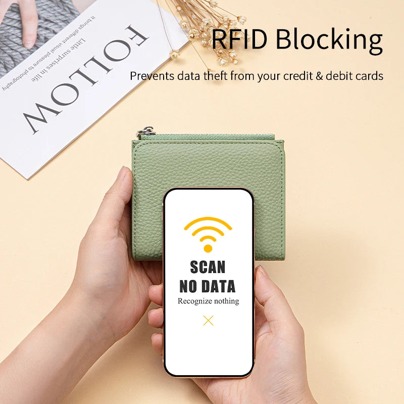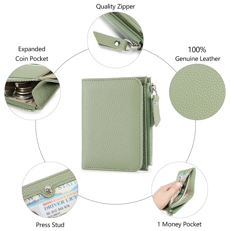 Genuine Leather Slim Short Wallet Credit Card Holder money clip wallet Zipper Coin pocket